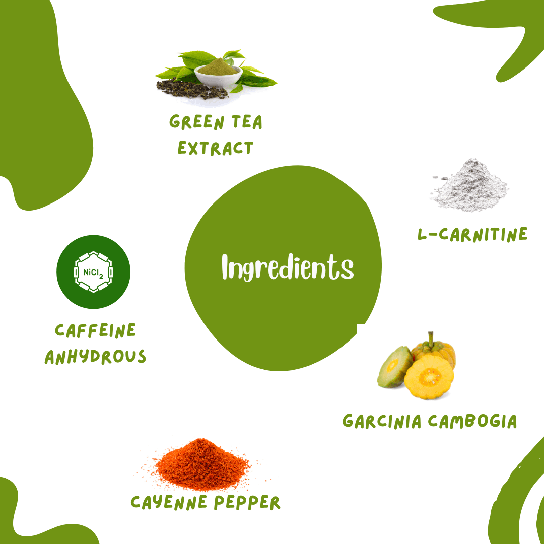 • Green Tea Extract: Rich in antioxidants, promotes fat loss.